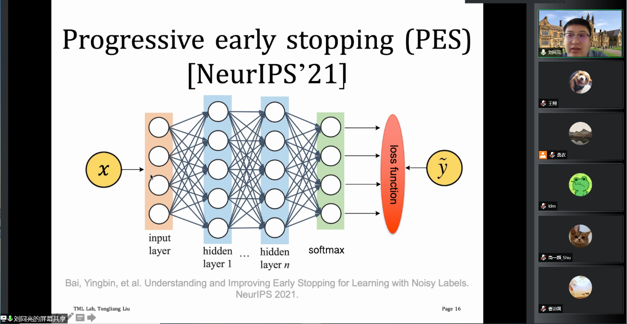 报告后,参会师生就自监督学习中的噪声问题、半监督学习与噪声学习的联系、课程学习在噪声问题中的运用等问题与刘同亮博士展开了热烈讨论,取得了良好的交流效果。