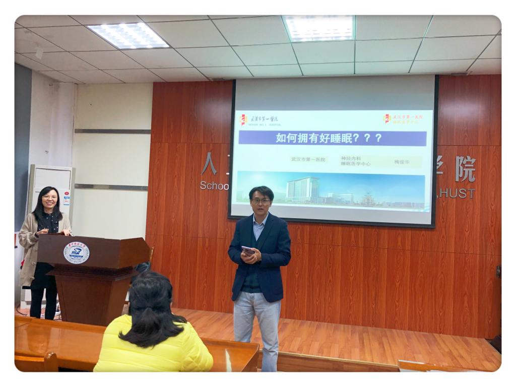 充足的睡眠对我们的身心健康与学习效率至关重要,为加强科学睡眠宣传教育,让师生养成良好的睡眠习惯,10月20日下午,学院工会邀请武汉市第一医院副主任医师 、睡眠及神经心理学组组长、睡眠中心负责人梅俊华医生为全院师生开展“如何拥有高质量睡眠”主题讲座。
