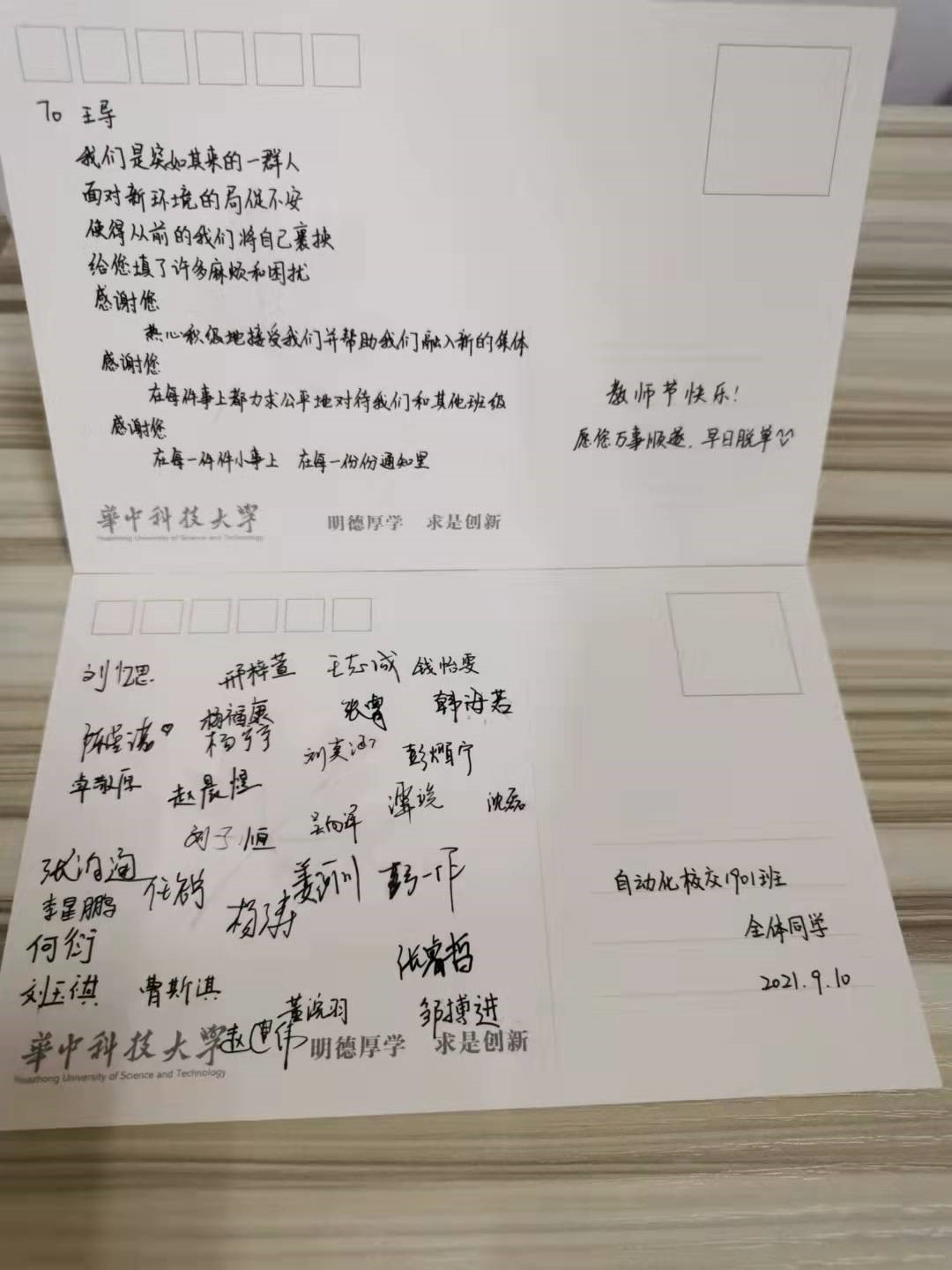 笔间书写,感念关怀奉献。自动化校交1901班的同学们结合班级情况,用句句真挚话语设计独一无二的祝福签名贺卡,向辅导员老师表达节日的祝福,感谢他一直以来的付出和贴心守护。