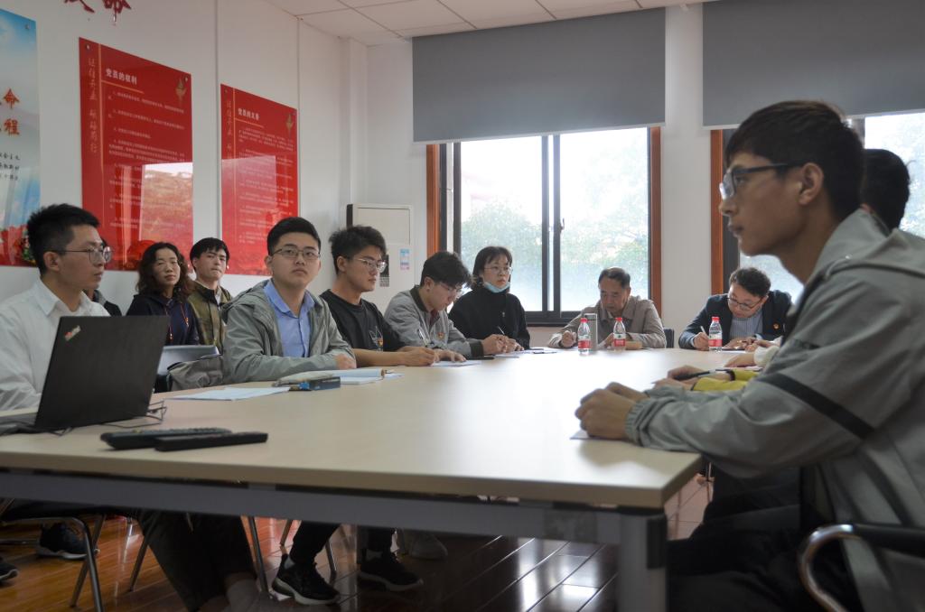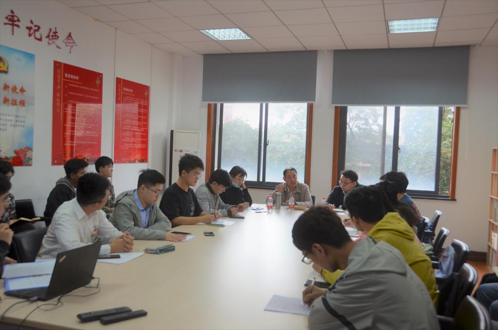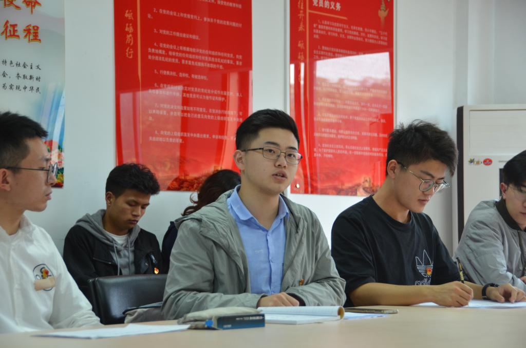 在学院党委帮扶毕业年级学生情况介绍部分,本科2017级辅导员贺聪炜介绍了学院党委指导各基层党支部为毕业年级开展的帮扶工作,并提出了下一阶段的具体要求;最后组织委员组织支部党员收缴党费并通报党费收缴情况。