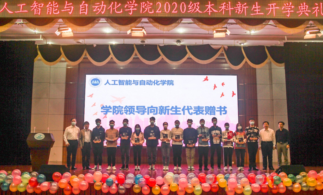 共同奏唱国歌后,学院领导向新生代表赠书,鼓励同学们积极响应国家人工智能战略,学好专业知识。