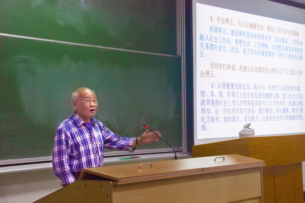 站在三尺讲台之上的秦忆虽已白发苍苍,但他的授课思路明确、条理清晰,并以一种风趣幽默的方式为同学们诠释了人生哲学更为他们刚刚展开的四年大学生活指明了方向。