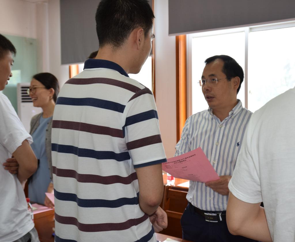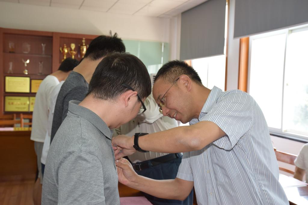 座谈结束后,教师代表依次为与会研究生分发佩戴了院徽并合影留念。