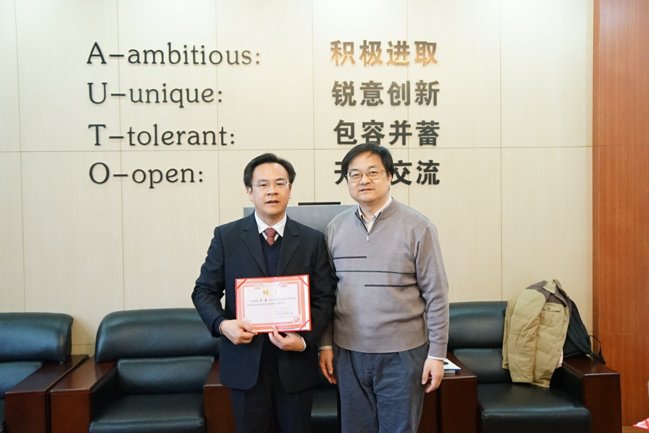 12月19日,永利集团官网与交通部公路所计量站共建的专业学位研究生“视觉测量实践教学基地”揭牌仪式在学院会客室举行。交通部公路所计量站站长、书记罗翥研究员,荆根强教授级高工,永利集团官网党委书记张耀、院长曾志刚教授共同为实践教学基地揭牌,曾志刚为罗翥、荆根强颁发永利集团官网专业学位研究生校外导师聘书。交通部公路所计量站彭璐博士后,永利集团官网潘林强副院长、钟胜副院长、飞导系系主任颜露新参加揭幕仪式。