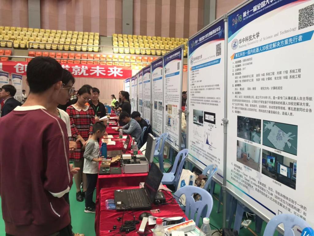 10月12日至16日,由教育部主办的第十一届全国大学生创新创业项目年会在厦门集美大学举行。来自全国各地的近1000名师生代表齐聚年会,展示交流各高校学子创新创业成果。我院硕16级学生胡亮团队的“博瓦科技—国内机器人3D视觉解决方案先行者”项目作为我校入选的四个项目之一,参加了年会的交流展示。