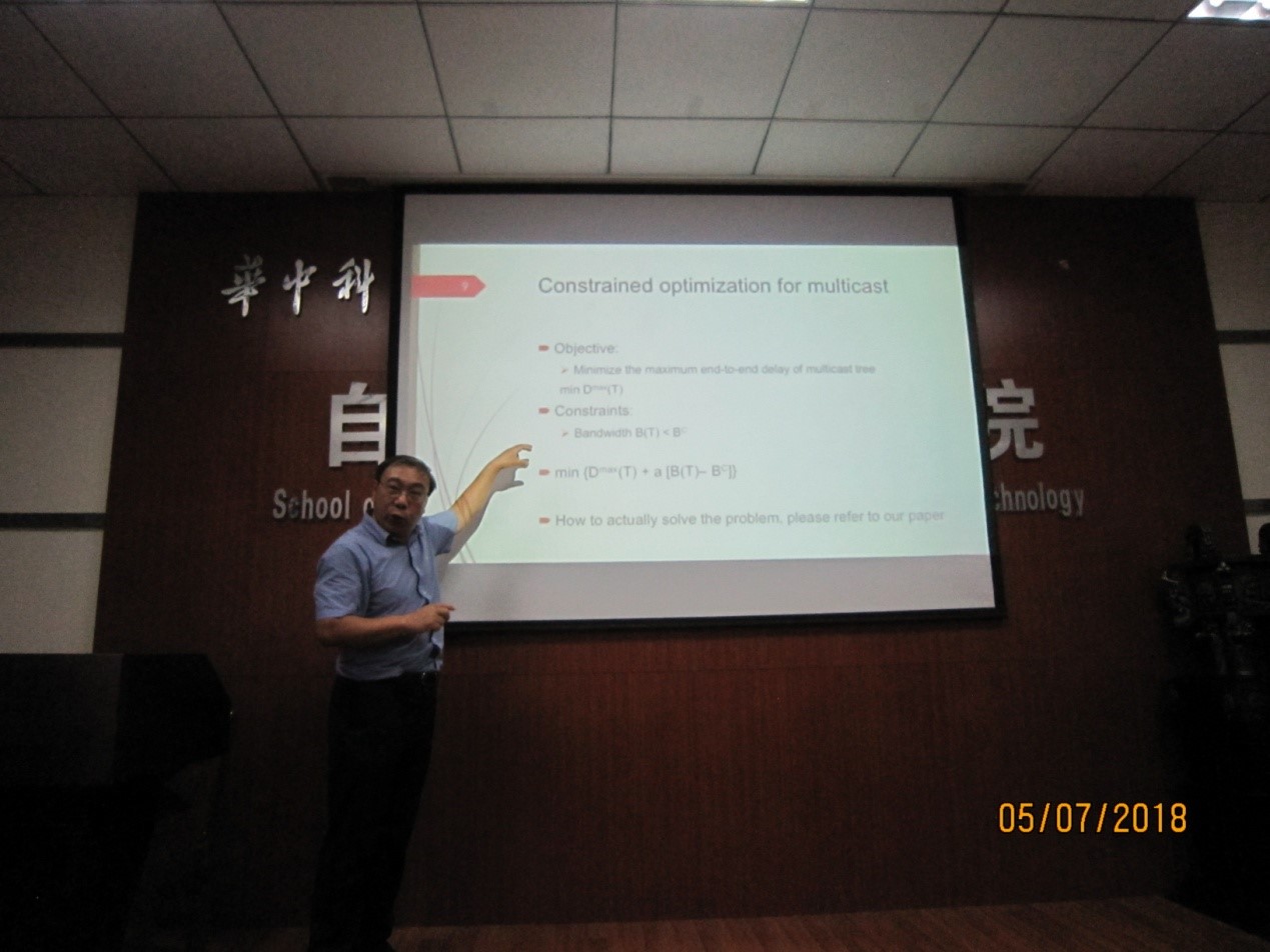 7月5日下午,澳大利亚昆士兰科技大学(Queensland University of Technology)田玉楚(Yuchu Tian)教授应关治洪教授邀请来永利集团官网进行学术交流与座谈,并作了题为“Constrained Optimization of Multicast Routing for Wide Area Control of Smart Grid”的学术报告。报告会由关治洪教授主持,永利集团官网周纯杰教授、黄剑教授、武汉科技大学李晓卉教授、中国地质大学姜晓伟教授等30多位师生参加了学术报告会。
