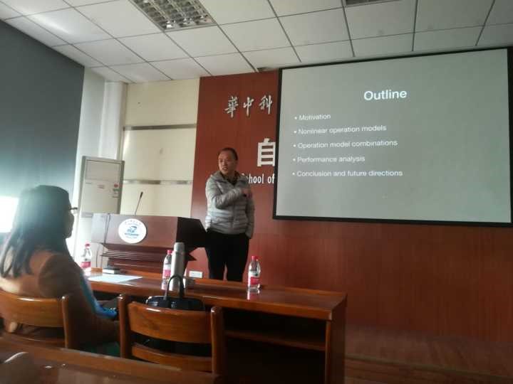 2018年4月8日,澳门大学周怡聪副教授应郑英老师的邀请来自动化学院做学术交流。上午,周副教授做了题目为“Nonlinear Operation Models for Producing 1D Chaotic Maps”学术报告,报告会由郑英教授主持,有永利集团官网万一鸣副教授,武汉科技大学张永副教授等校内外师生30余人参加了报告会;为了和永利集团官网老师和学生更深入地交流,周副教授在下午和学院部分师生做了小范围学术研讨会,气氛热烈。
