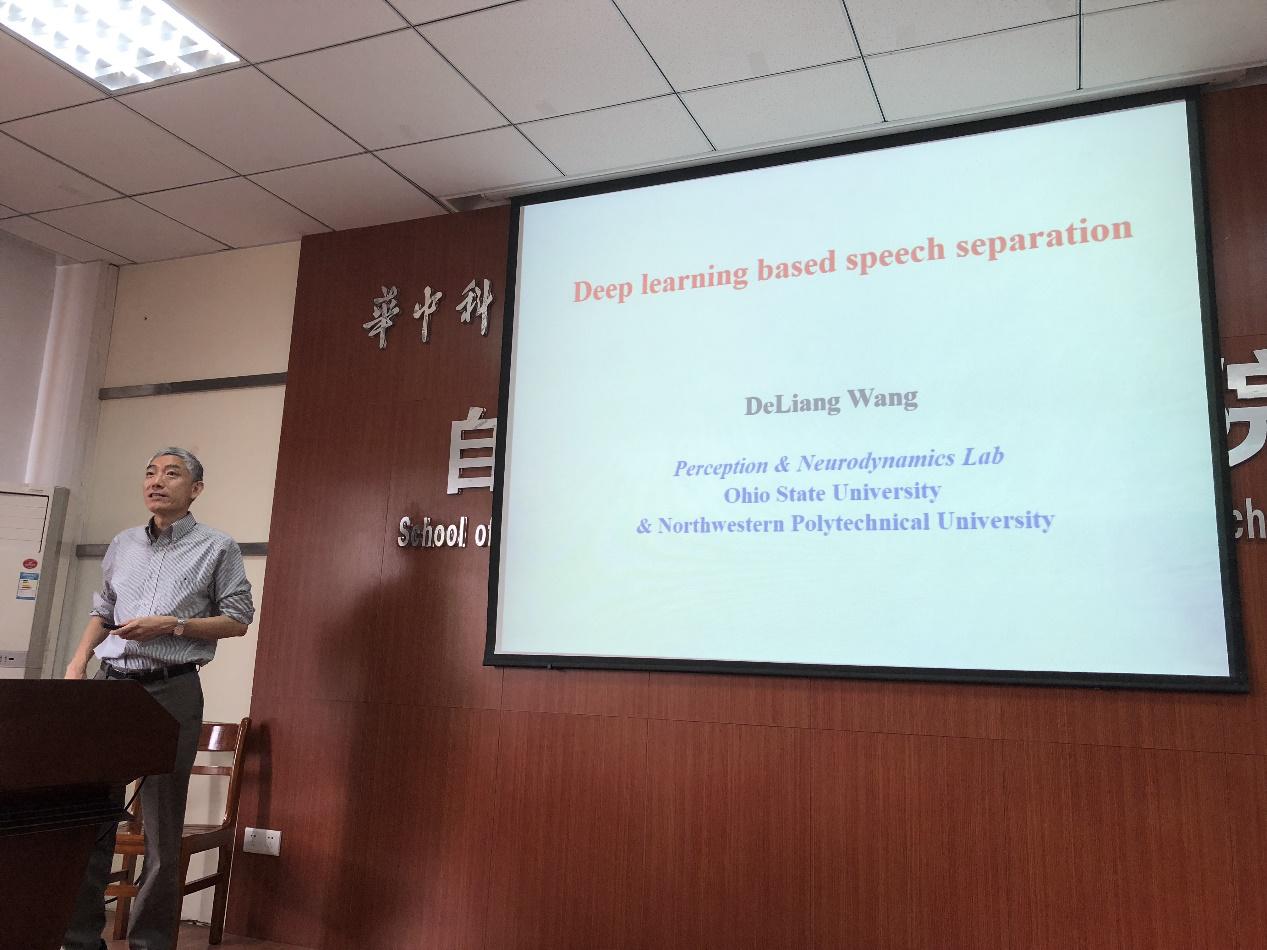5月3日上午10时,美国俄亥俄州立大学DeLiang Wang教授应邀来永利集团官网进行学术交流,并作了题为“Deep Learning Based Speech Separation”的学术报告。永利集团官网曾志刚教授,王小平教授,温世平副教授,刘慧副教授和永利集团官网111引智基地海外专家、美国密苏里科技大学Donald Wunsch教授等30多位师生参加了报告会。