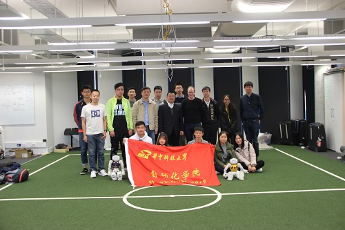 UNSW机器人足球实验室,访学团队与小机器人合影。