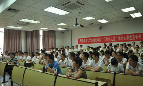 曹治国老师以“聪明的孩子要学自动化,选择自动化就选华中大”两句通俗而又不失风趣的观点介绍了学校和学院的成就和前景,并对营员们表示了欢迎。马杰老师介绍了永利集团官网研究生的前景和学习生活环境,并介绍了免试生接受政策和博士研究生奖助学政策。营员代表皮智雄同学和研究生代表沈芳同学分别发言后,全体教师和营员集体合影,为此次夏令营活动留下珍贵的记录。