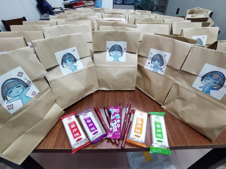 本次发放的考研福袋中,包含两根棒棒糖,四包云片糕以及一支“金榜题名”系列签字笔,寓意考试成绩最棒,步步“糕”升,预祝大家金榜题名。同时还贴上了304am永利集团卡通形象小AI的祝福表情,为大家加油打气。