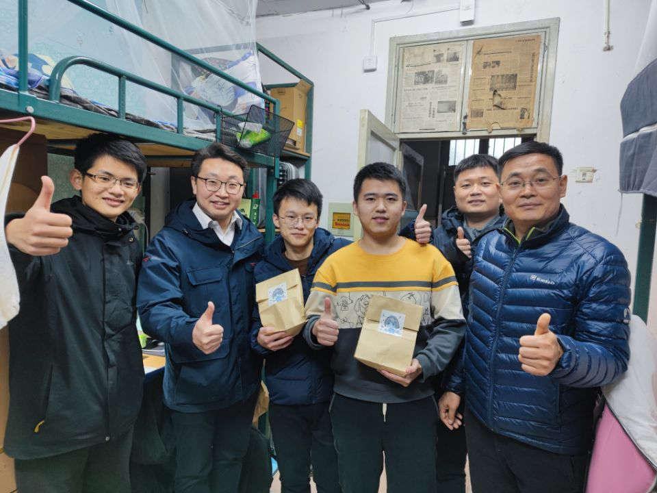 为关心关爱在考研路上奋斗拼搏的AIA学子,12月19日晚,学院党委书记耿远明,副书记朱平带领学生工作组辅导员以及本科生党员代表为本院考研学子送上考前祝福,为他们加油鼓劲。