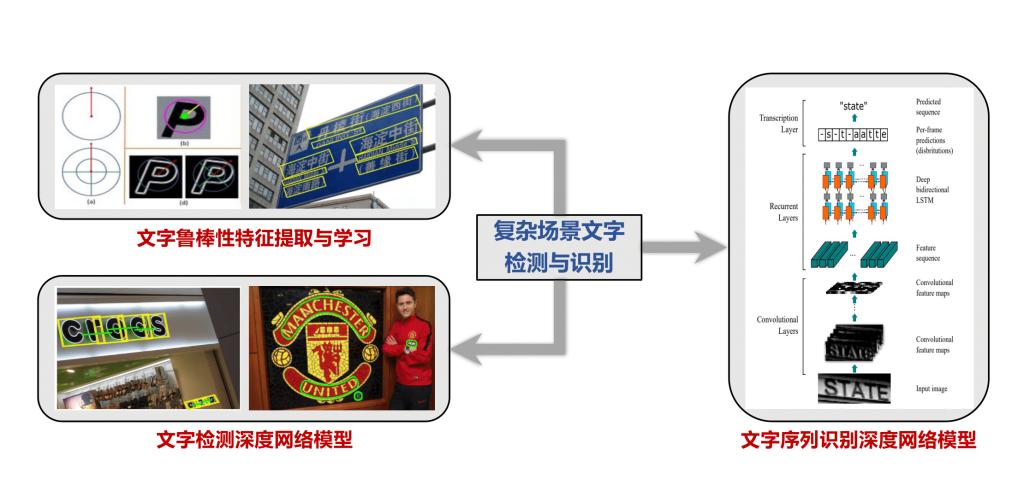 该项目的技术创新性体现在,提出了首个适合多方向场景文字的检测算法,构造了具有旋转不变性的文字特征,发布首个多方向场景文字检测公共数据集及评价标准; 联合文字序列特征提取和上下文分析的创新思路,构造了可直接识别文字序列图像的新型深度网络架构,实现了不定长文字序列图像精准且高效的识别;可端到端学习的场景文字检测深度网络模型,破除了基于包围盒的目标监测限制,能适应场景文字的各种变形。