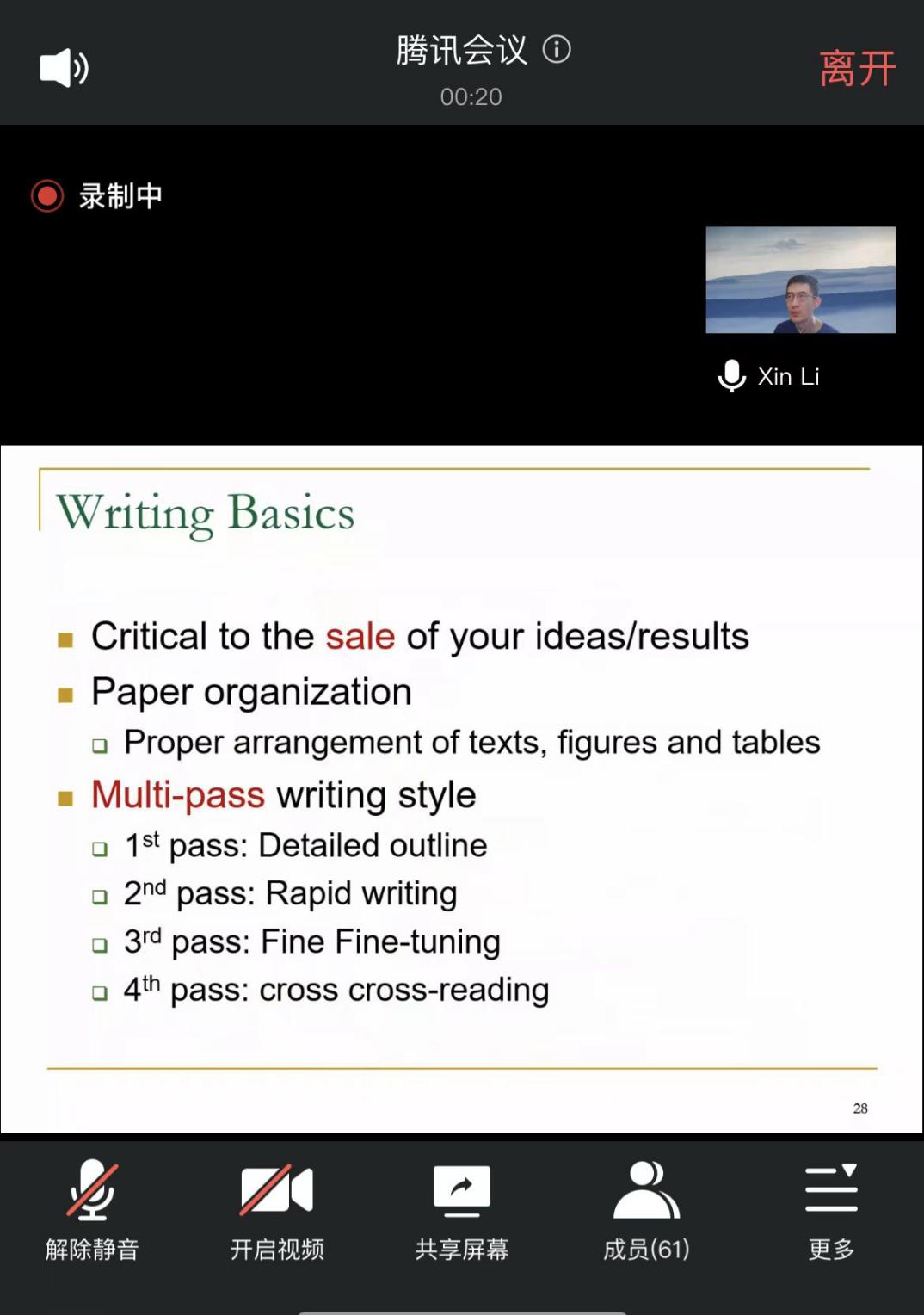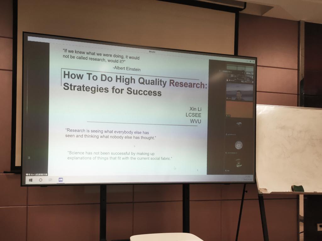 2020年6月8日晚21点,应304am永利集团曹治国教授的邀请,西弗吉尼亚大学计算机科学与电气工程学系教授Xin Li于科技楼903会议室给院内师生作了主题为"How to Do High-Quality Research?--Strategies for Success(如何开展高质量科研--通往成功的策略)"的学术讲座。该讲座于线上线下同步进行,共计90多名师生参与。