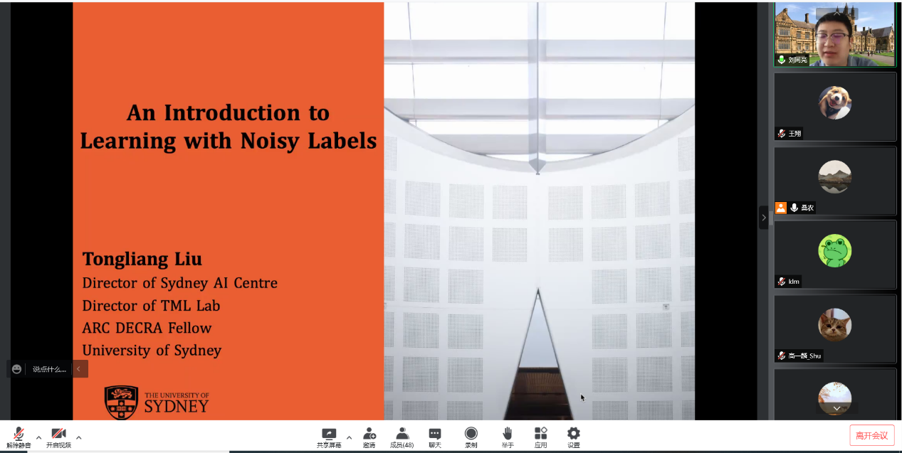 6月20日上午10时,应永利集团官网桑农教授邀请,澳大利亚悉尼大学人工智能中心主任刘同亮博士在线上作了题为"An Introduction to Learning with Noisy Labels(噪声标签学习导论)"的学术报告。