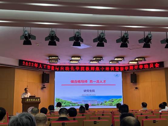 紧接着,永利集团官网曹治国教授对于研究生培养工作进行了交流演讲。曹教授说明要以完成科研项目、培养创新能力为导向,同时提出录取前与同学面谈的两个要点:招收自己适合的学生、了解学生的特点。他也从入学前的教育、读研时的培养以及遇事时的帮助三个方面展开论述,旨在为全体研究生同学提供更有针对性、更为精准的教学服务支持。