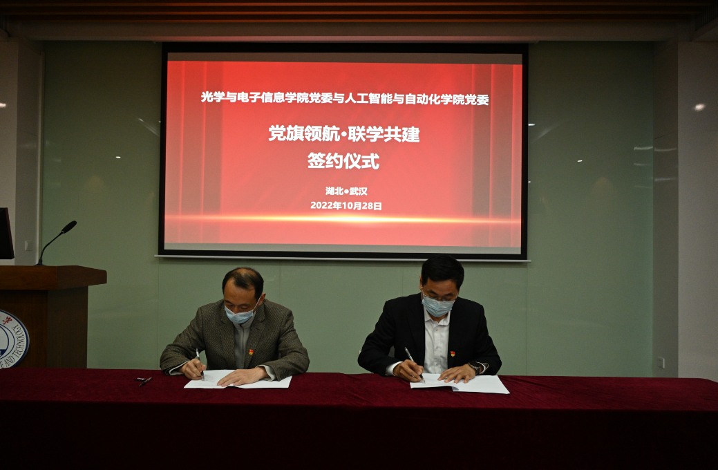 10月28日上午11:00,光学与电子信息学院党委和304am永利集团党委“党旗领航·联学共建”签约仪式在光电信息大楼C112举行。两个学院的党委书记、副书记、教工党支部书记代表、相关科室负责人等参加本次活动,签约仪式由光电学院张敏明副书记主持。