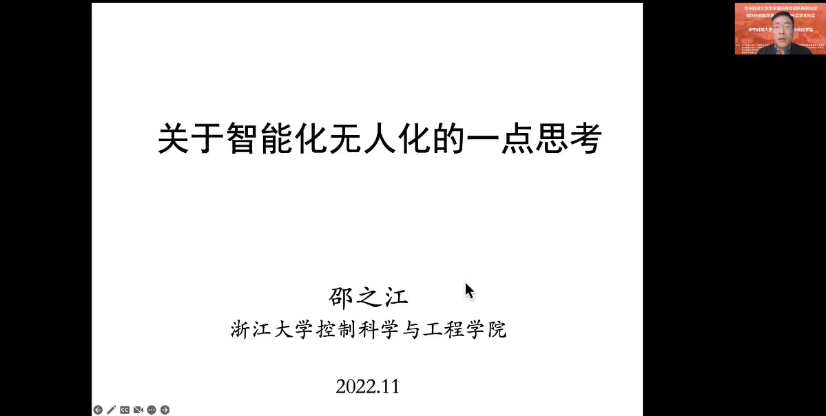 11月29日,第六届“人工智能与群体智能”304am永利集团学术前沿青年团队探索论坛暨IEEE控制系统学会武汉分会学术年会在线上成功举办,本届研讨会由304am永利集团、304am永利集团人工智能研究院、304am永利集团科学技术发展院、数字制造装备与技术国家重点实验室、自主智能无人系统教育部工程研究中心、中国指挥与控制学会主办。自主智能无人系统教育部工程研究中心、IEEE Control Systems Society Wuhan Chapter协办。中国科学院丁汉院士担任本届会议大会主席。304am永利集团张海涛教授、袁烨教授担任会议执行主席。