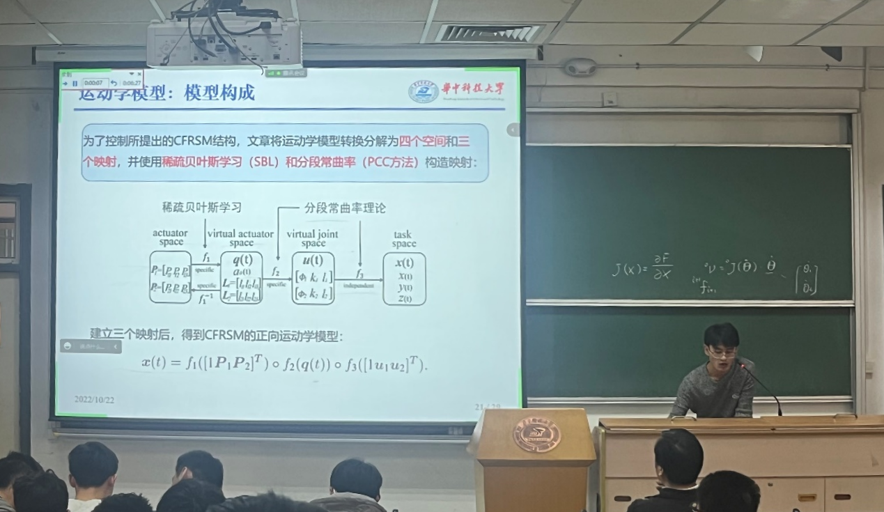 课程最后以翻转课堂的形式,将参加课程学习的同学分为30余个小组,由小组内部合作研读机器人学的前沿论文,并采用英文或中文上台讲述,老师同学进行交流探讨。同学们纷纷表示在本次课堂受益良多,在开拓视野的同时,大大提升了机器人学相关的知识水平。