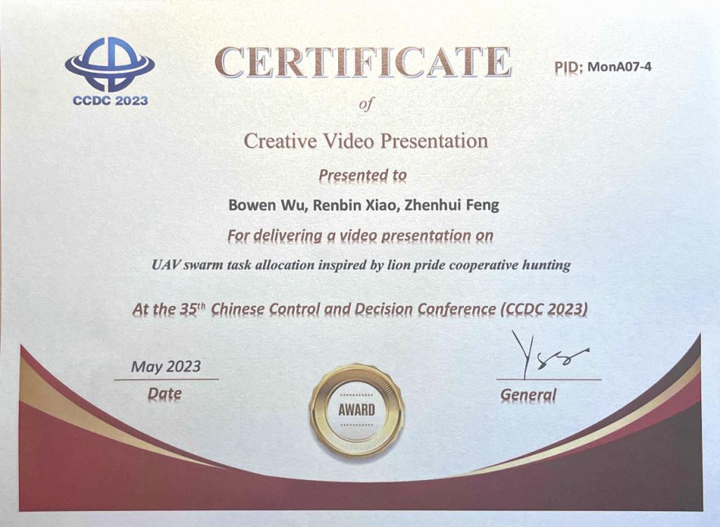 5月20日至22日,第35届中国控制与决策会议在湖北宜昌隆重举行。永利集团官网博士研究生邬博文和硕士研究生蔡炯,分别在导师肖人彬教授和王燕舞教授的指导下,荣获大会论文“最具人气作品奖”(Most Popular Academic Works Award)”。