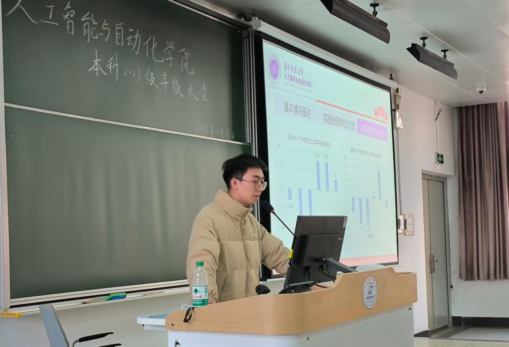 杜俊龙通过基本情况描述,实验班成绩对比分析,学期成绩对比分析三个方面对2024年秋季学期的学业成绩进行了回顾总结,着重强调大家的学习态度与积极性问题。