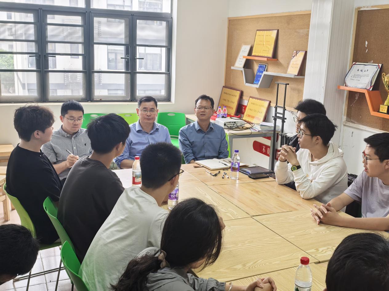 4月30日中午,人工智能与自动化学院第七期有“AI”面对面——院领导交流日活动在韵苑19栋3楼公用房举行。本期活动聚焦C语言课程设计(简称C课设)教学效果,院党委书记耿远明、副院长池明、党委副书记曹攀辉、教务科主任陈虹与本科24级辅导员刘典辉、三十余名学生代表共话课程建设。